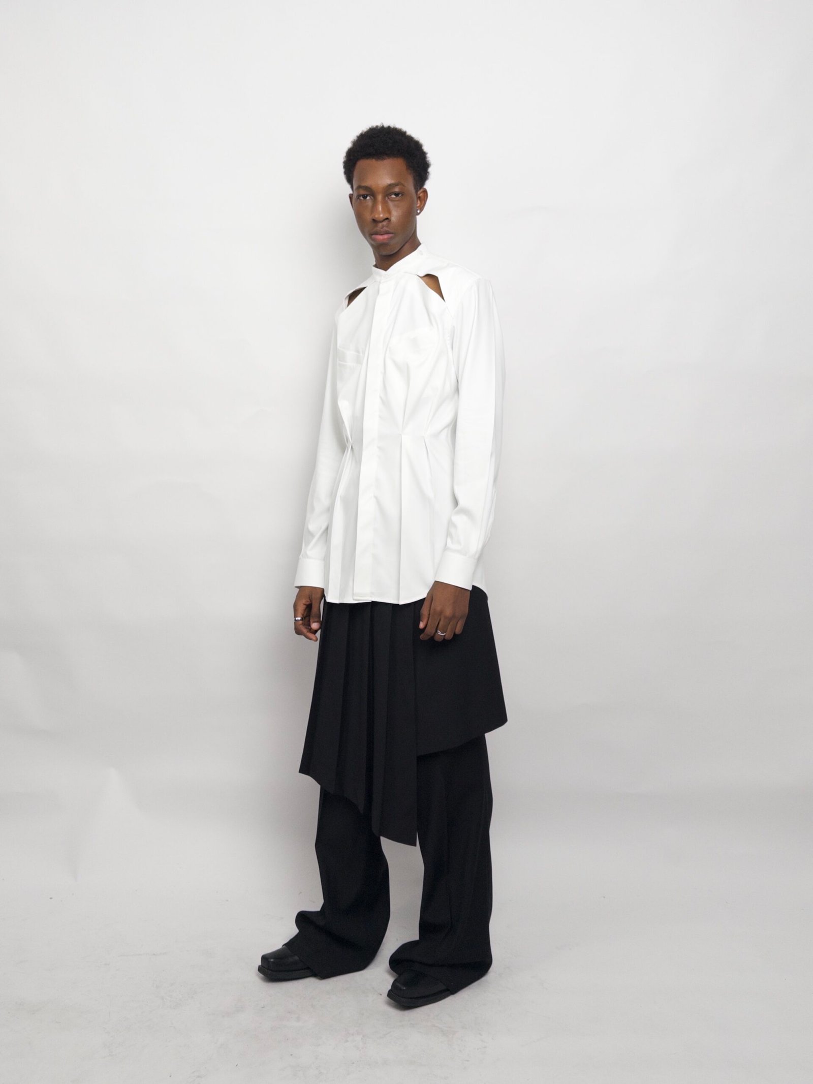 model is 183CM tall and wears a size M(40) with a relaxed fit
