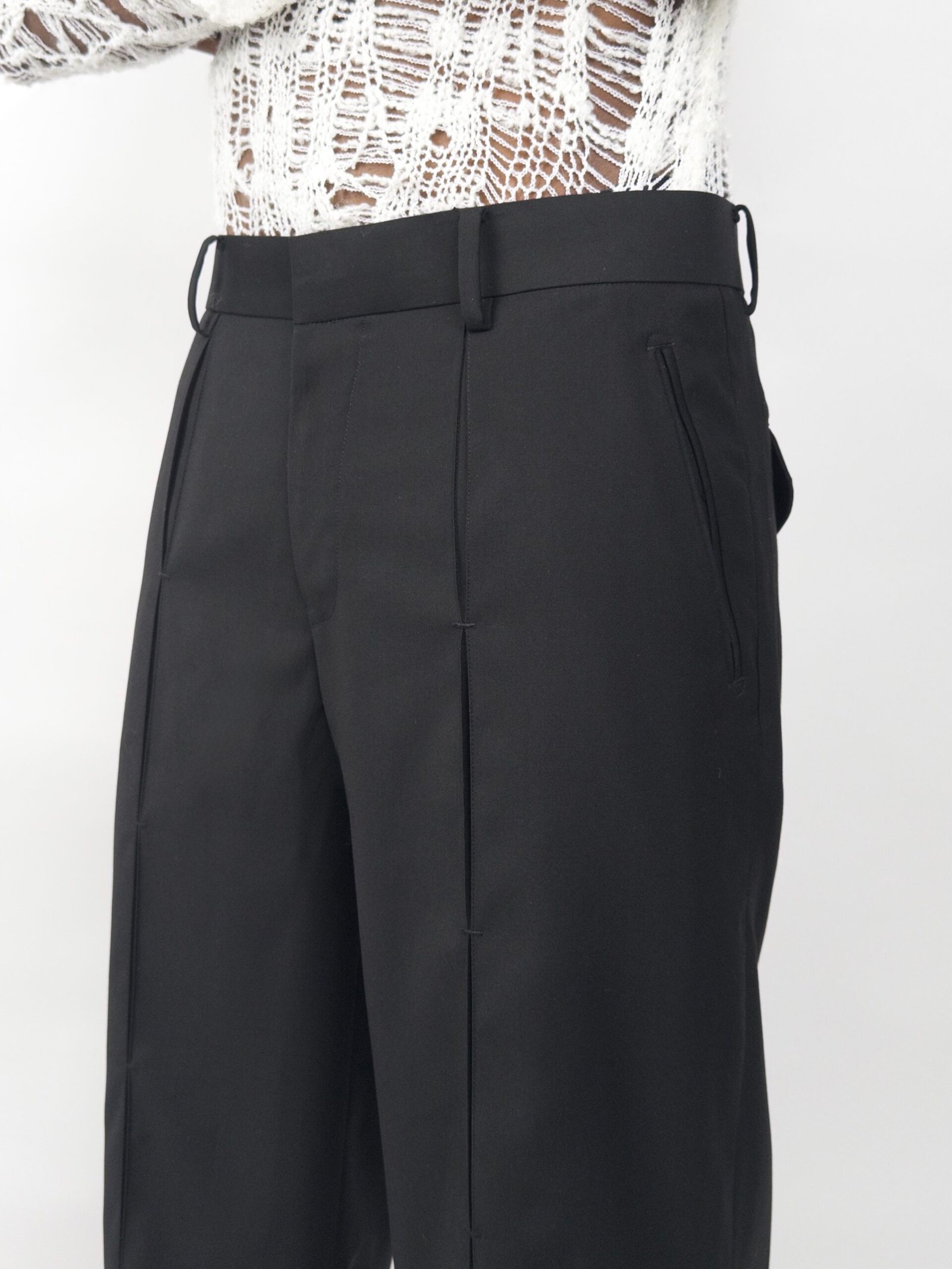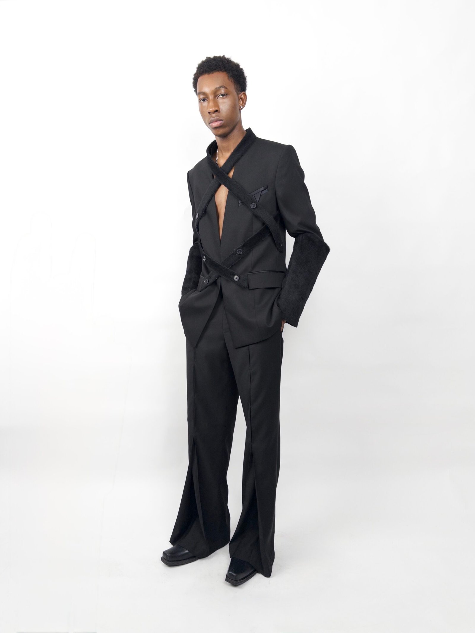 where structure meets evolution. Featuring stitched vertical serials that echo the double helix, these trousers redefine tailoring with movement and depth. The stitched serials running through the legs resemble DNA chains, a subtle reminder of what makes each of us unique.